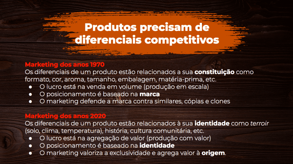 Porque isso acontece? Porque produtos locais não são padronizadose têm valores endógenos que derivam de sua origem, território, modo de fazer ou prática comunitária, de sua história, cultura, herança social – e isso cria um diferencial de marketing. Estes valores se tornam diferenciais exclusivos que não podem ser trocados, vendidos, ou modificados porque fazem parte de sua identidade. Por exemplo, o fabricante de outra região pode copiar seu produto mas não pode copiar o clima da sua cidade. A gestão do marketing de produtos locais – o chamado branding – se baseia em valorizar estes diferenciais exclusivos e inimitáveis, o que valorize também o território que é seu “sobrenome”.