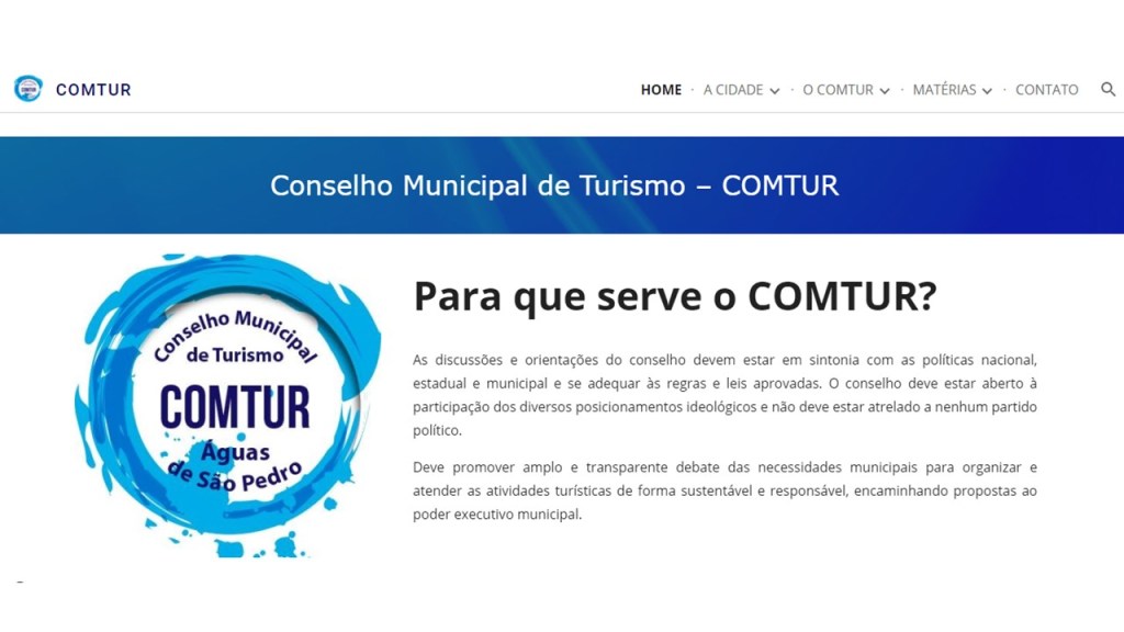 Elaboração do Site do COMTUR foi uma das proposições quando ainda se revisava o Plano Diretor de Turismo no segundo semestre de 2020. Na época criou-se um grupo de comunicação que definiu a criação de uma página no facebook para divulgação de reuniões e projetos e um site para disponibilização de toda a informação institucional. Lançado em julho de 2021, nele podem acessar-se informações sobre a cidade e seus atrativos, uma apresentação do que é o COMTUR; de qual é o seu Regimento Interno, que normatiza o seu funcionamento; das Atas onde são registradas as reuniões ordinárias e extraordinárias; das legislações: que nomeiam os membros; que estabelecem taxas como, por exemplo, a de Turismo; que dispõem sobre a criação do Conselho e a Lei ordinária que reestrutura o Conselho Municipal de Turismo. No site é possível também acessar o Plano Diretor de Turismo. Destaque para as voluntárias Daniela Hanashiro e Kelly Braz